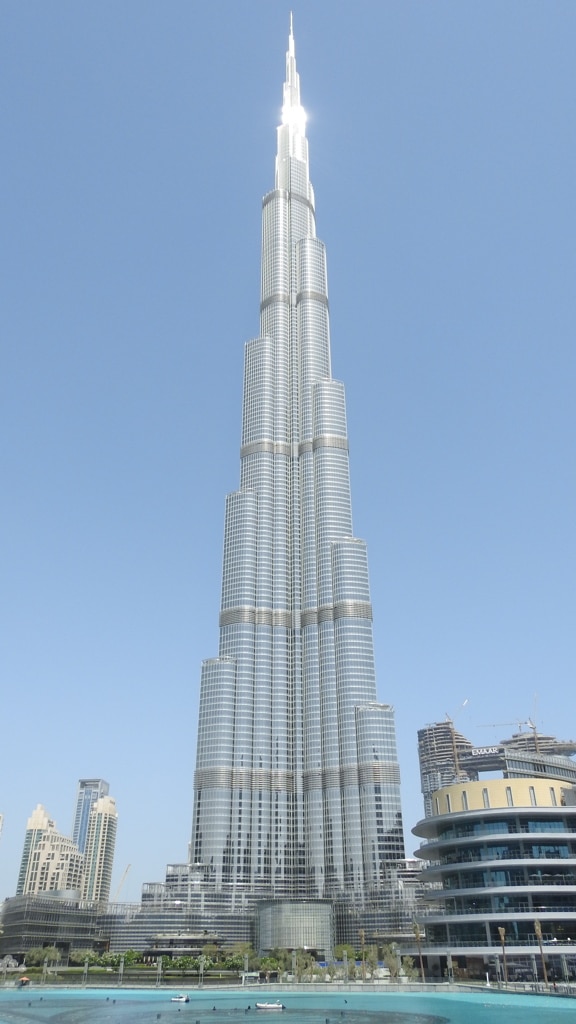 Le Burj Khalifa d’une hauteur de 828 mètres culmine au-dessus de la ville de Dubaï.