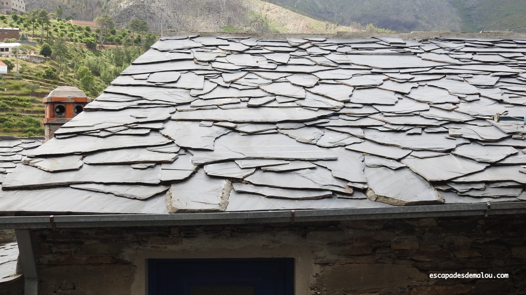 Les maisons aux portes de couleur bleue et aux toits en ardoises surplombent des terrasses au couleur vert profond.